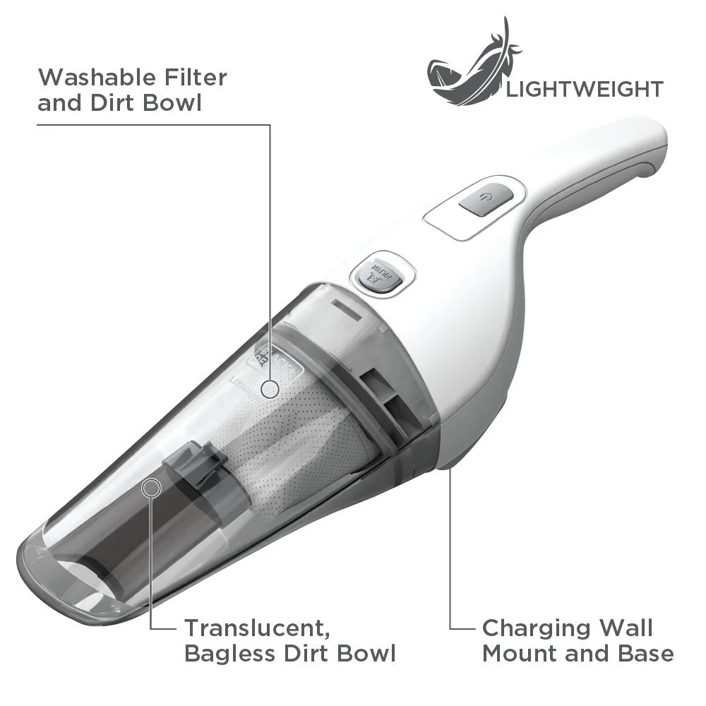 Introducing the Black+Decker Power Tools HNV215B10, a remarkable 7.2V Compact Cordless Lithium Ion Hand Vacuum that redefines convenience in home cleaning. This innovative handheld vacuum is designed for those who seek efficiency without the hassle of cords. With its lightweight design and powerful suction capabilities, it is perfect for quick clean-ups around the house, in your car, or in tight spaces.