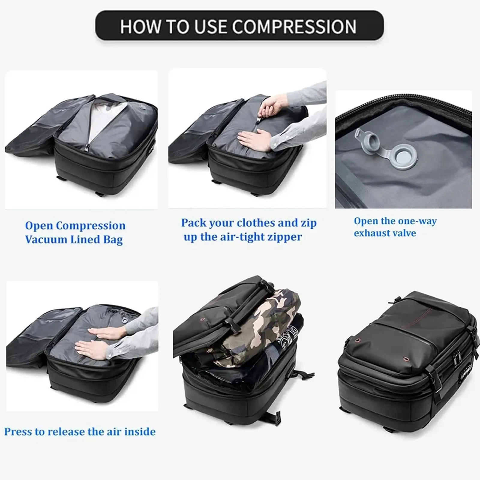 One of the standout features of the Luxair Vacuum Backpack is its advanced Vacuum Compression System. This game-changing technology allows travelers to effortlessly flatten their clothes and other belongings, creating extra space within the backpack. As a result, you can say goodbye to cumbersome luggage and embrace a more streamlined packing experience. The ability to fit more in your suitcase without adding extra weight is a significant advantage for any traveler.