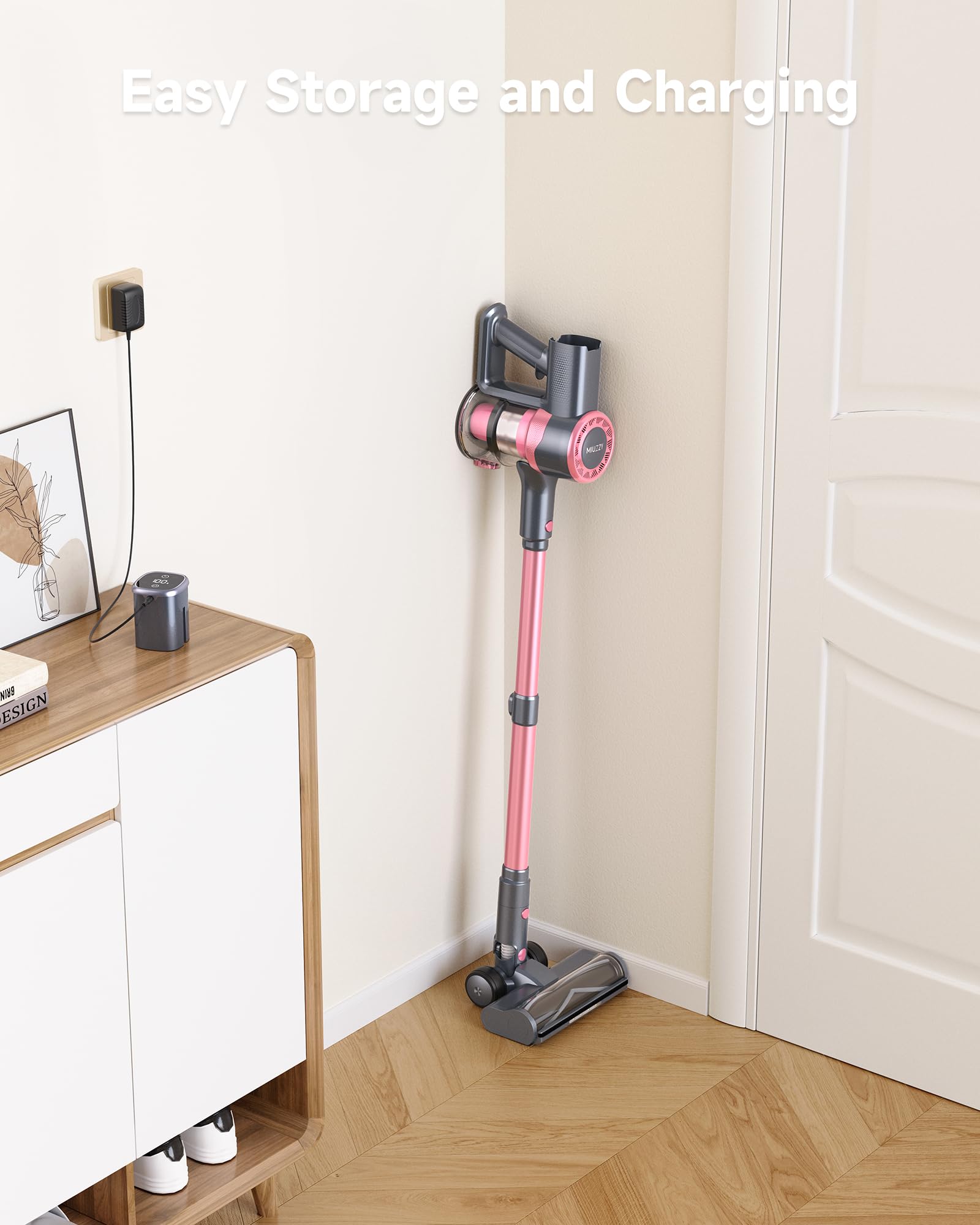 The MIUZZY Cordless Vacuum Cleaner is designed for convenience and efficiency. With a battery life that allows for up to 50 minutes of cleaning, you can tackle multiple areas without interruption. The universal tangle-free floor brush ensures that hair doesn’t get tangled up, making it suitable for various surfaces such as carpets and hard floors.